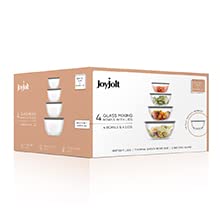 - JoyJolt Nesting Mixing Bowls will arrive securely gift boxed like all JoyJolt Glassware and come with our robust 12-Month Warranty. So contact us if anything goes wrong And whether you’re using them for baking bowls or serving bowls we only have one rule – Live JoyFul and Cook for Joy!
